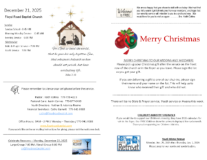 Please note…some information has been removed intentionally. The full bulletin and calendar are available in the hard copy version given out on Sunday mornings.